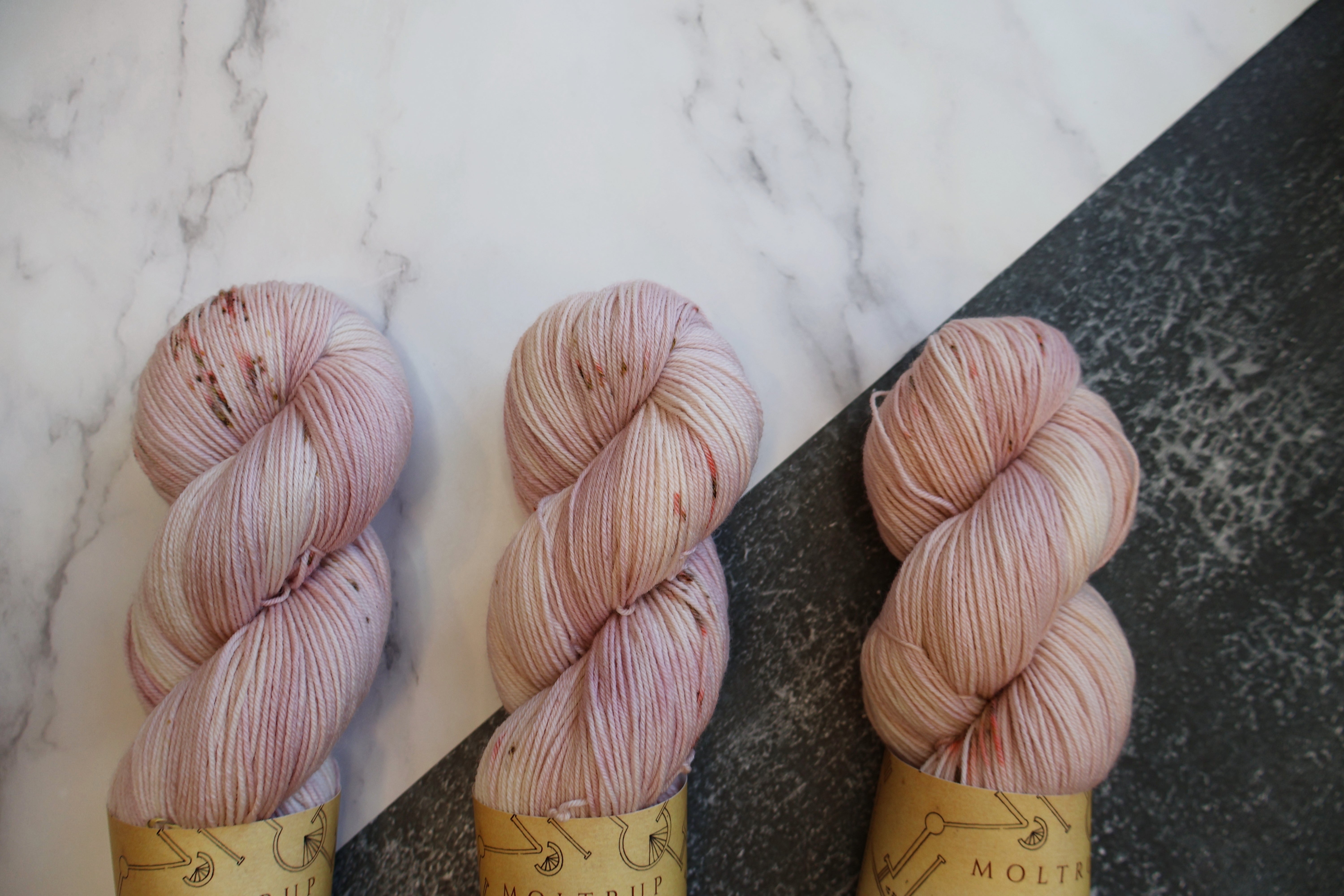 Garnet er blødt og smidigt, og strikker flot og jævnt op på pind 3 - 3,5 mm alene eller på pind 4-4,5 mm med en følgetråd.