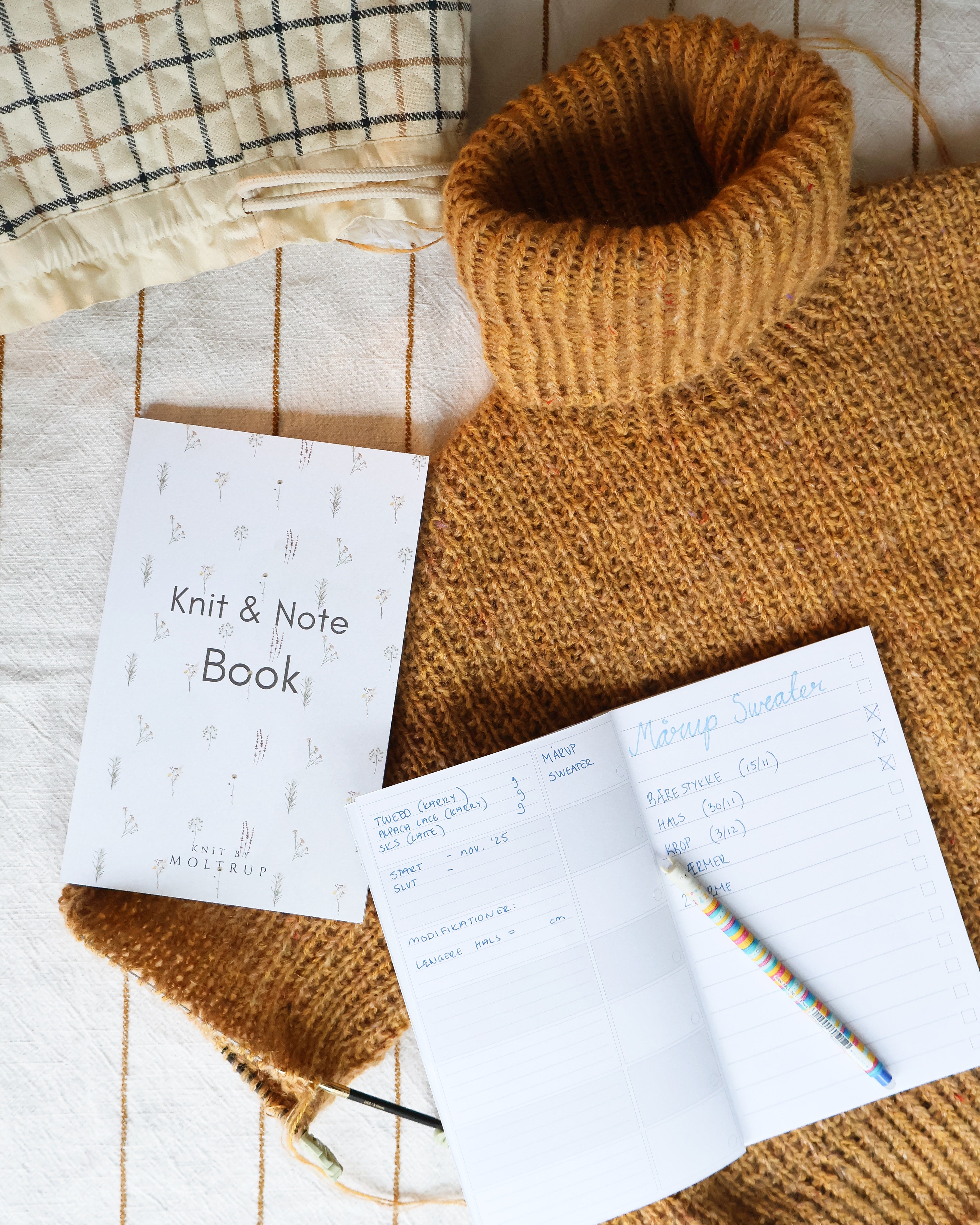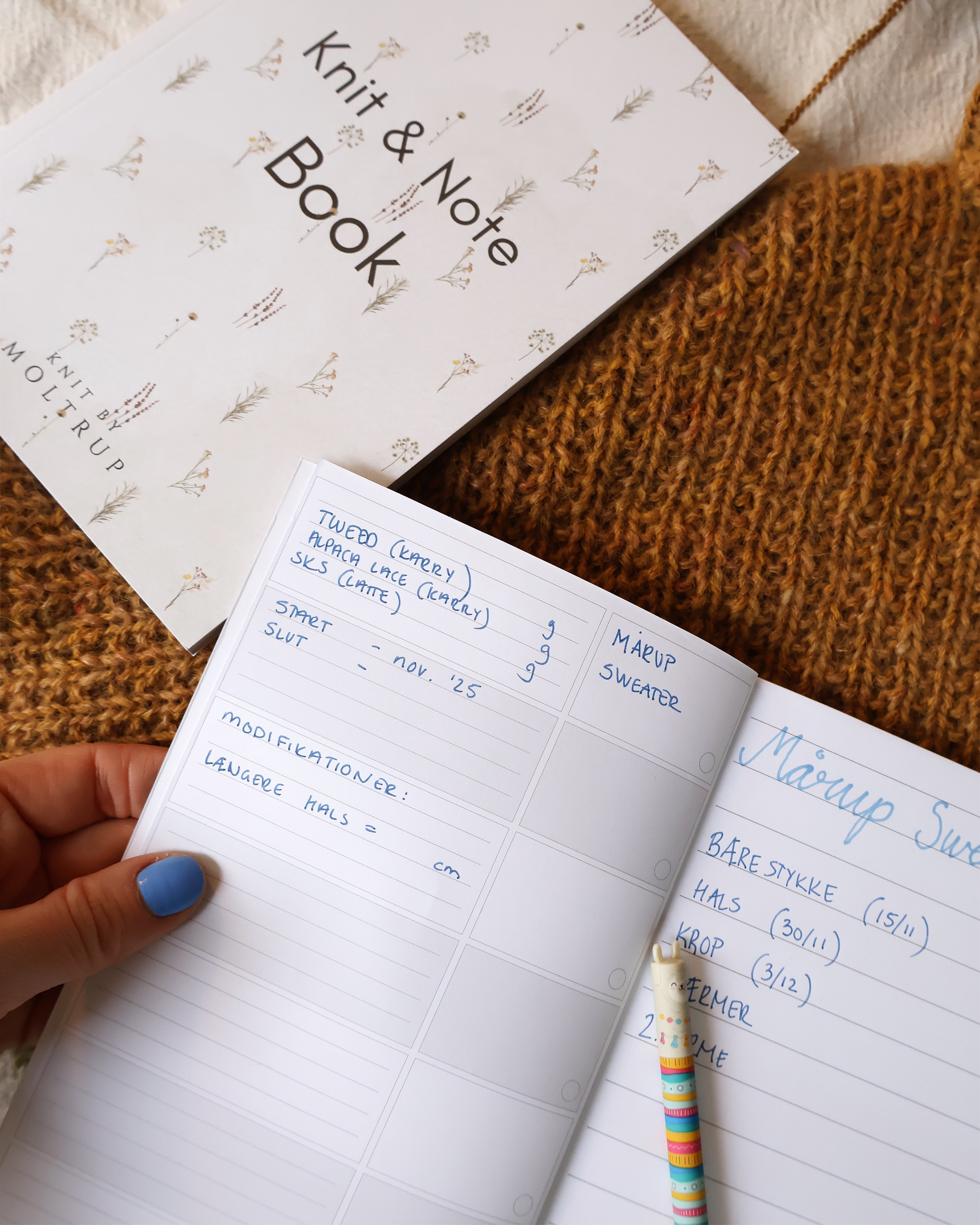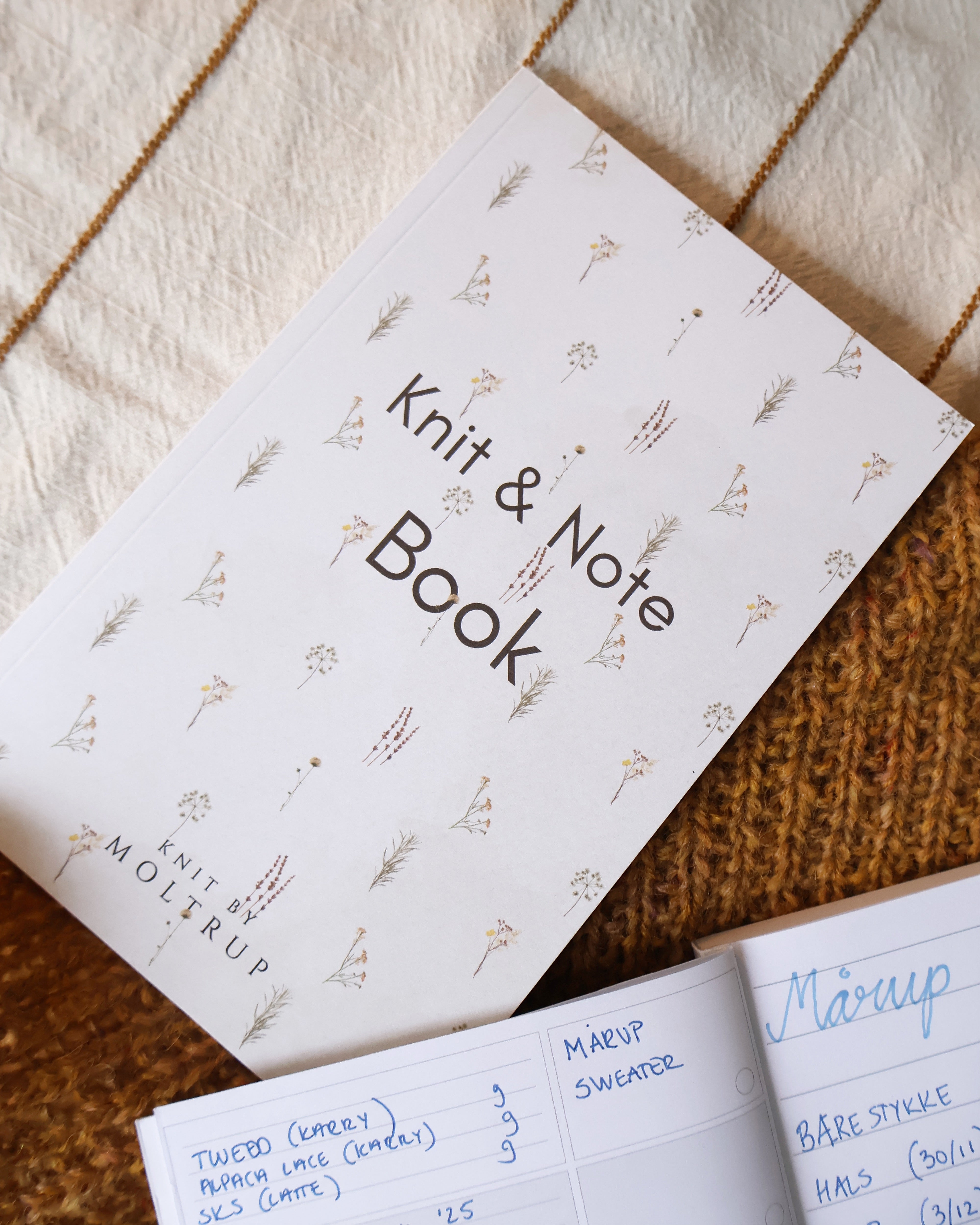 Handy notesbog til dine strikkenoter. Du kan tracke dine projekter og holde styr på hvor meget garn du har brugt, og om du har lavet modifikationer.