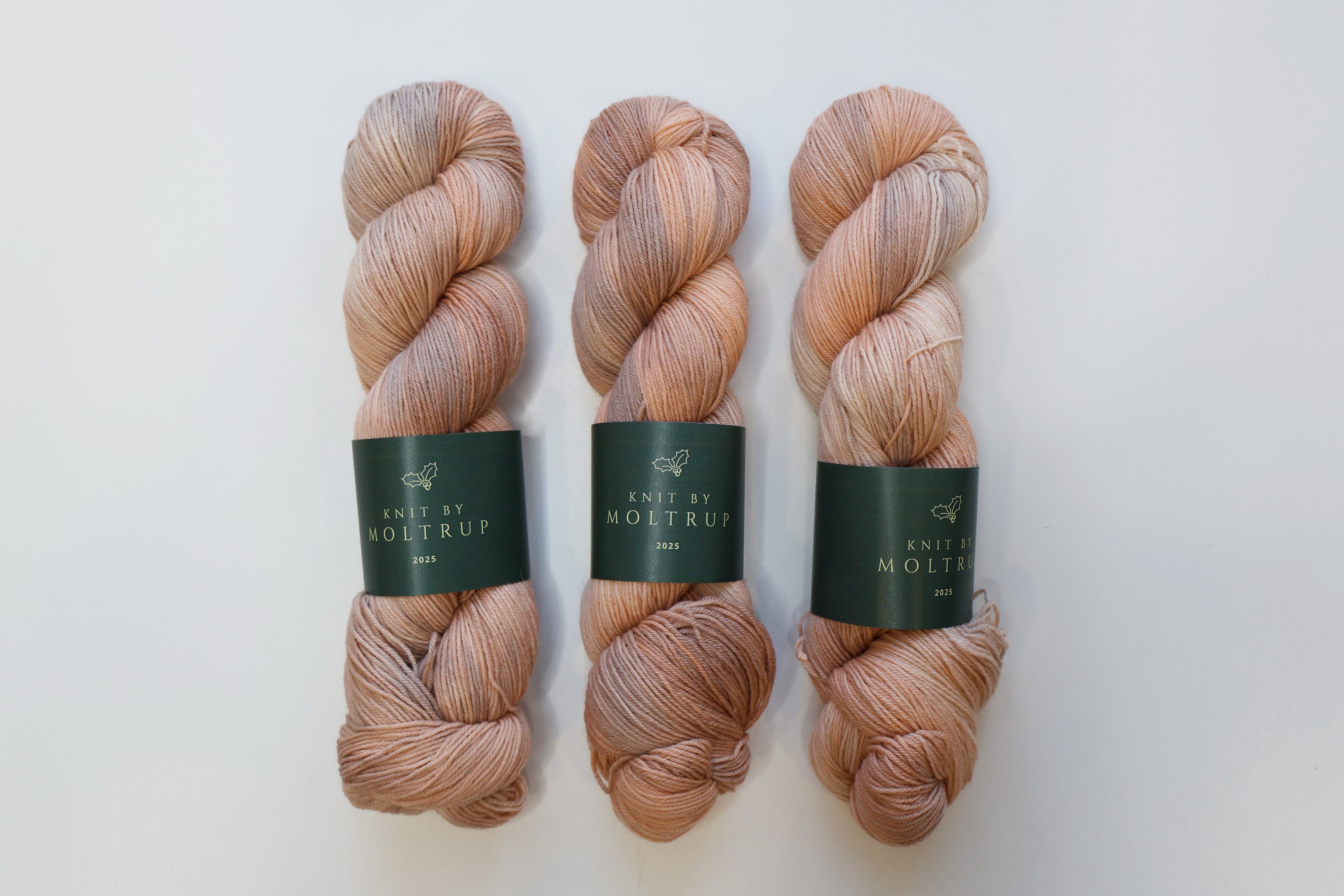 Garnet er blødt og smidigt, og strikker flot og jævnt op på pind 3 - 3,5 mm alene eller på pind 4-4,5 mm med en følgetråd.