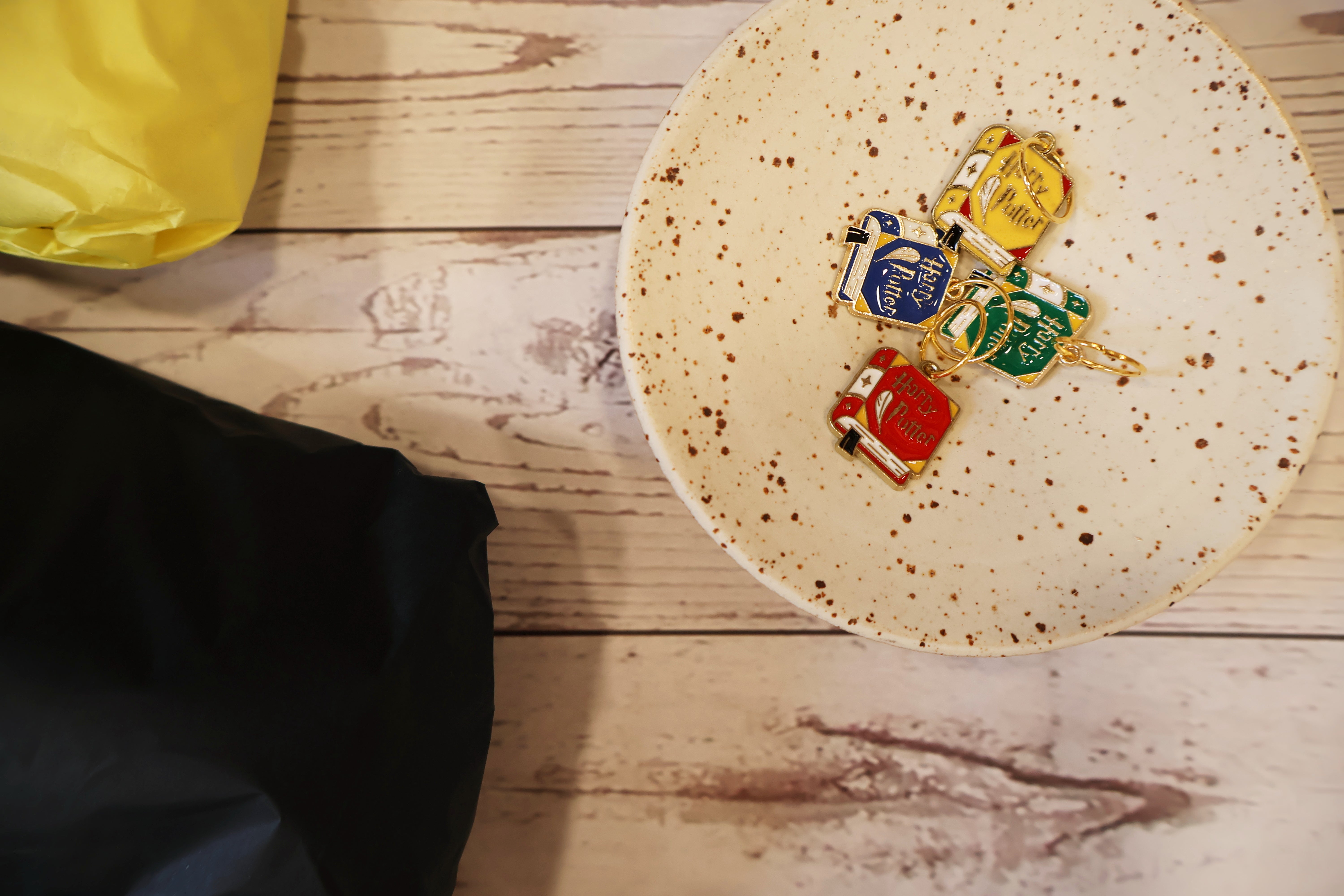 Kalenderen består af fire separat indpakkede Sock Sets (i Hogwarts kollegiefarver!), med tilhørende maskemarkører og en strømpeopskrift!