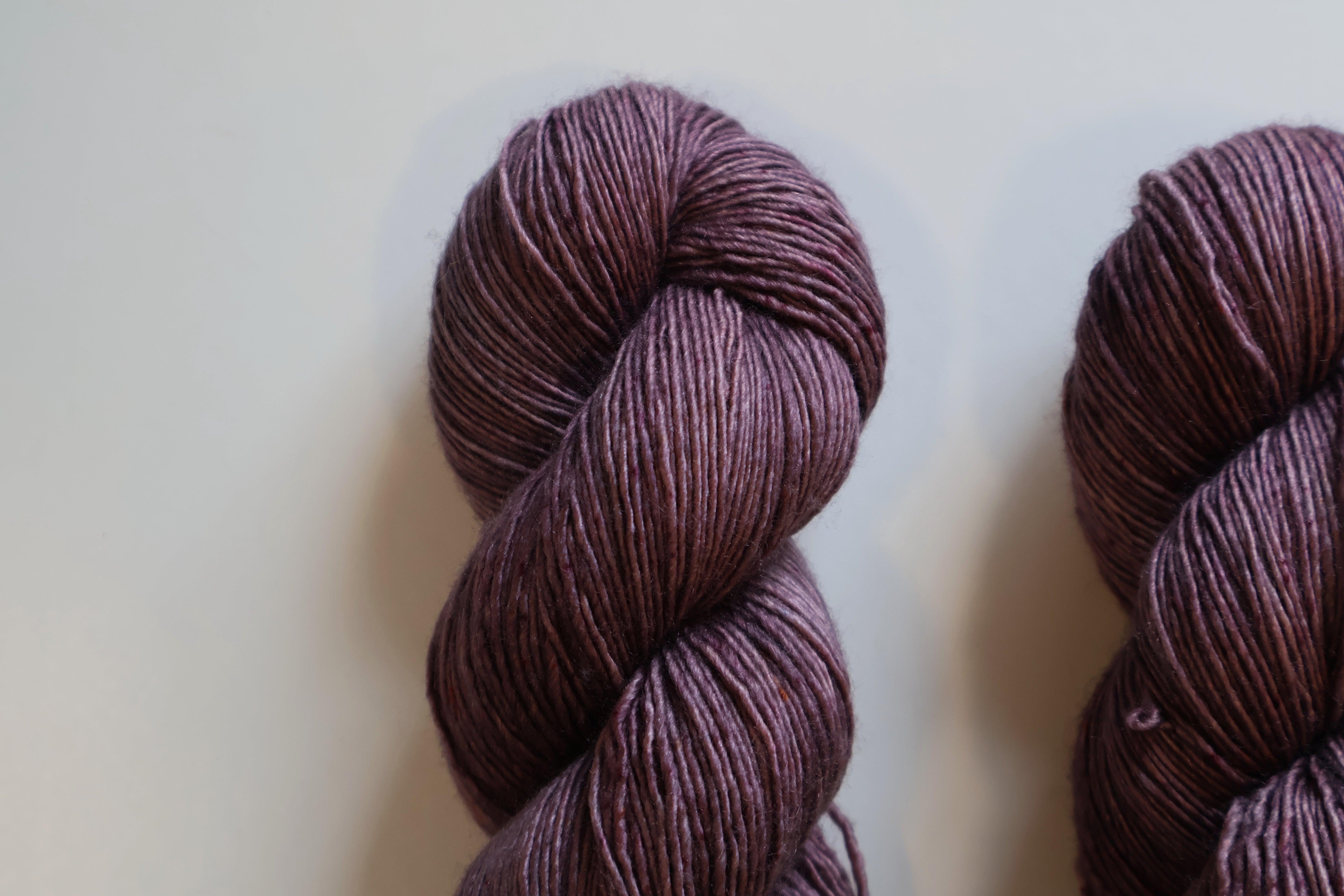 Buttery soft and delicious single silk and merino blend, with a light shine. It reflects nicely in the sun, and feels heavier and cooler than pure wool.