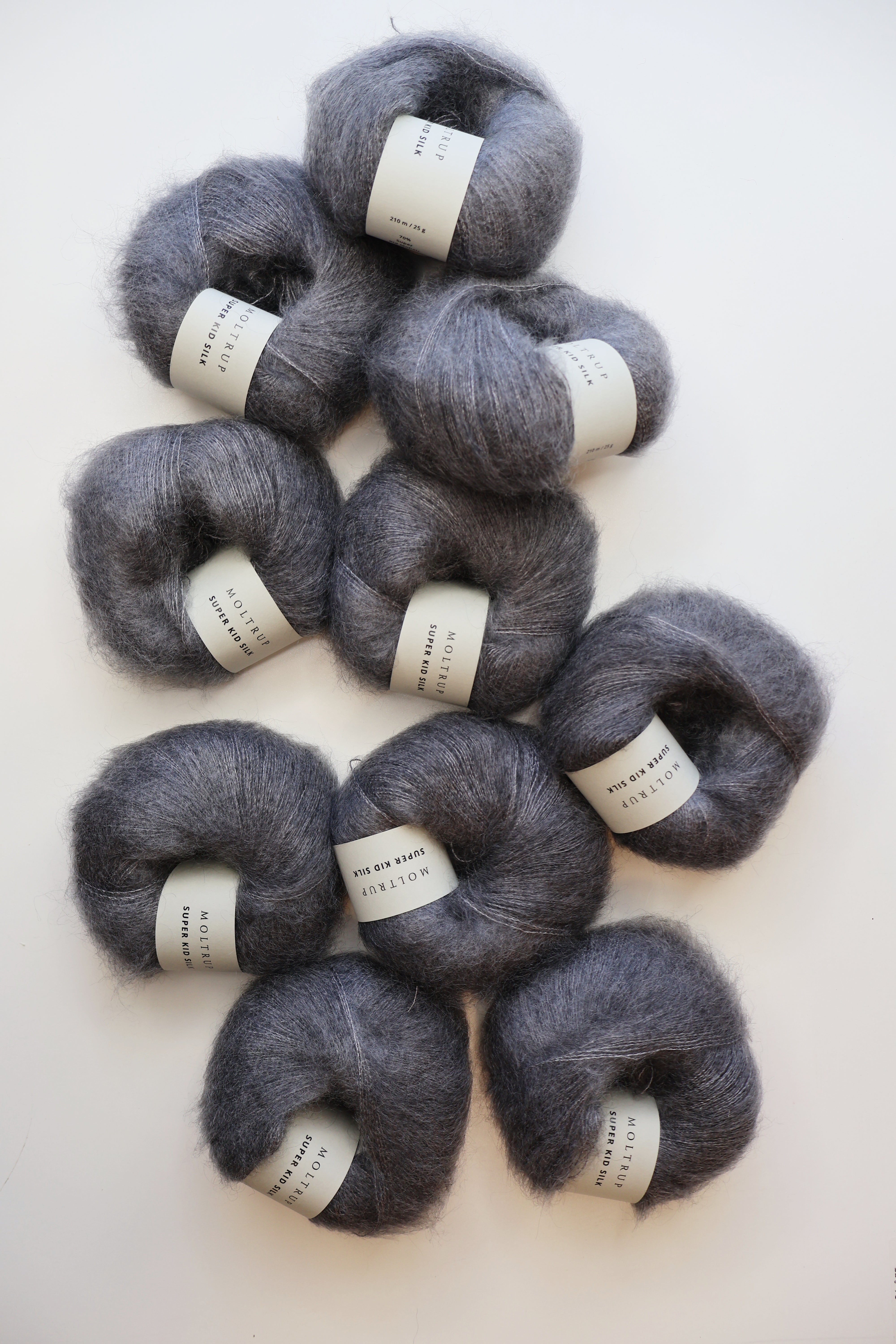 Ultrablød og langhåret silke mohair, der pga. den høje kvalitet og lange fibre, vil føles blødere og fælde mindre end andre mohair typer. Det er den hidtil blødeste mohair, vi har strikket med, og det giver et flot og skinnende resultat.